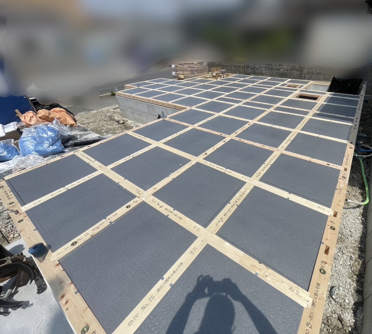 お疲れ様です😊先日の名古屋市港区の施工事例🏠これまで2回見学行きましたが、2階の組み立ての様子でした。今回は初めて土台の様子を見学してきました! 断熱材を枠内にピッタリ