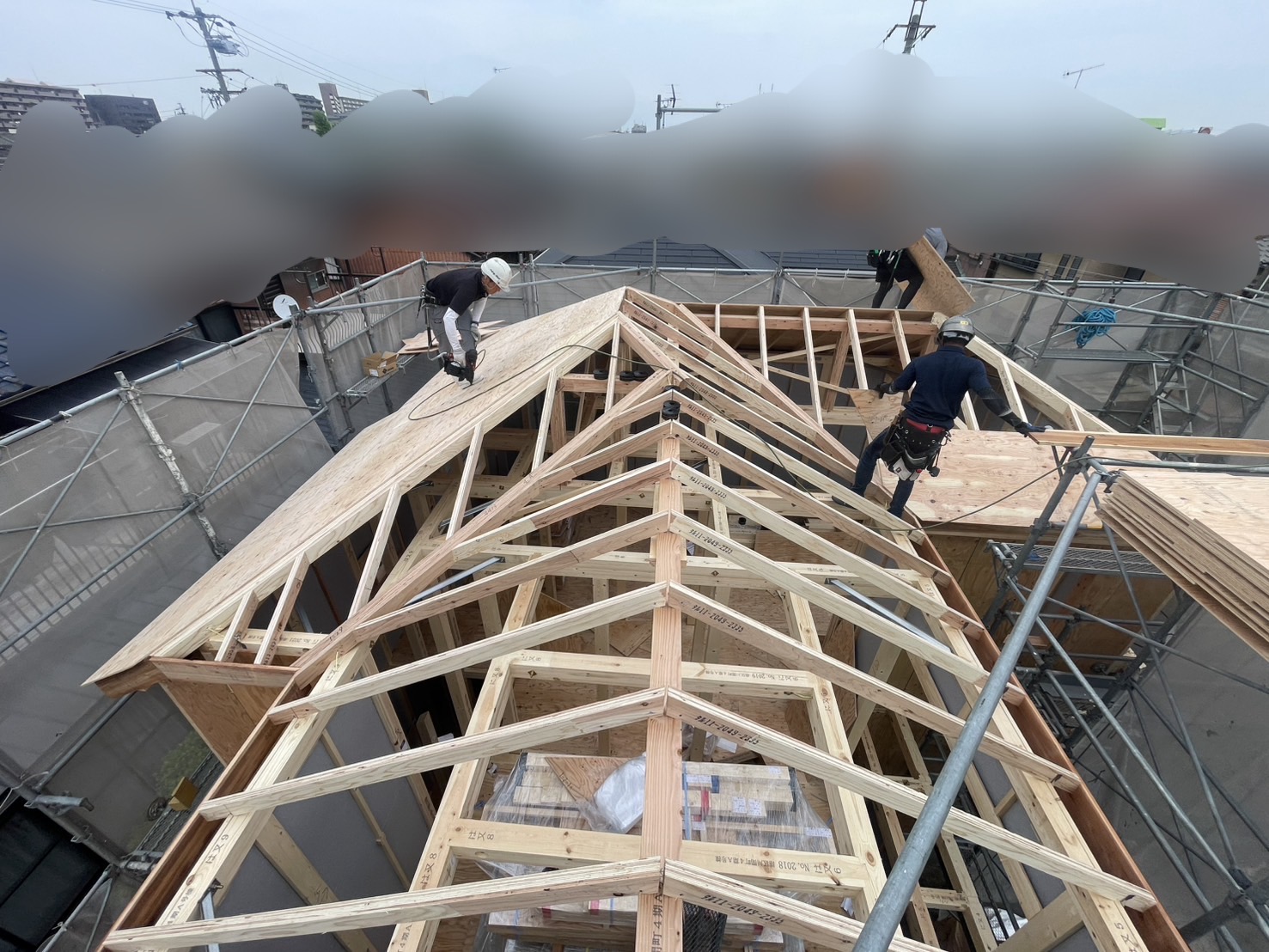 #電線エグい#道路幅が狭い#手起こし(手組み)上棟驚くほど電線電線電線!電線パラダイスな現場での施工事例です。電線パラダイスな上に道路幅も狭いのでレッカーが入れません。ということは?、、、もうアレしか